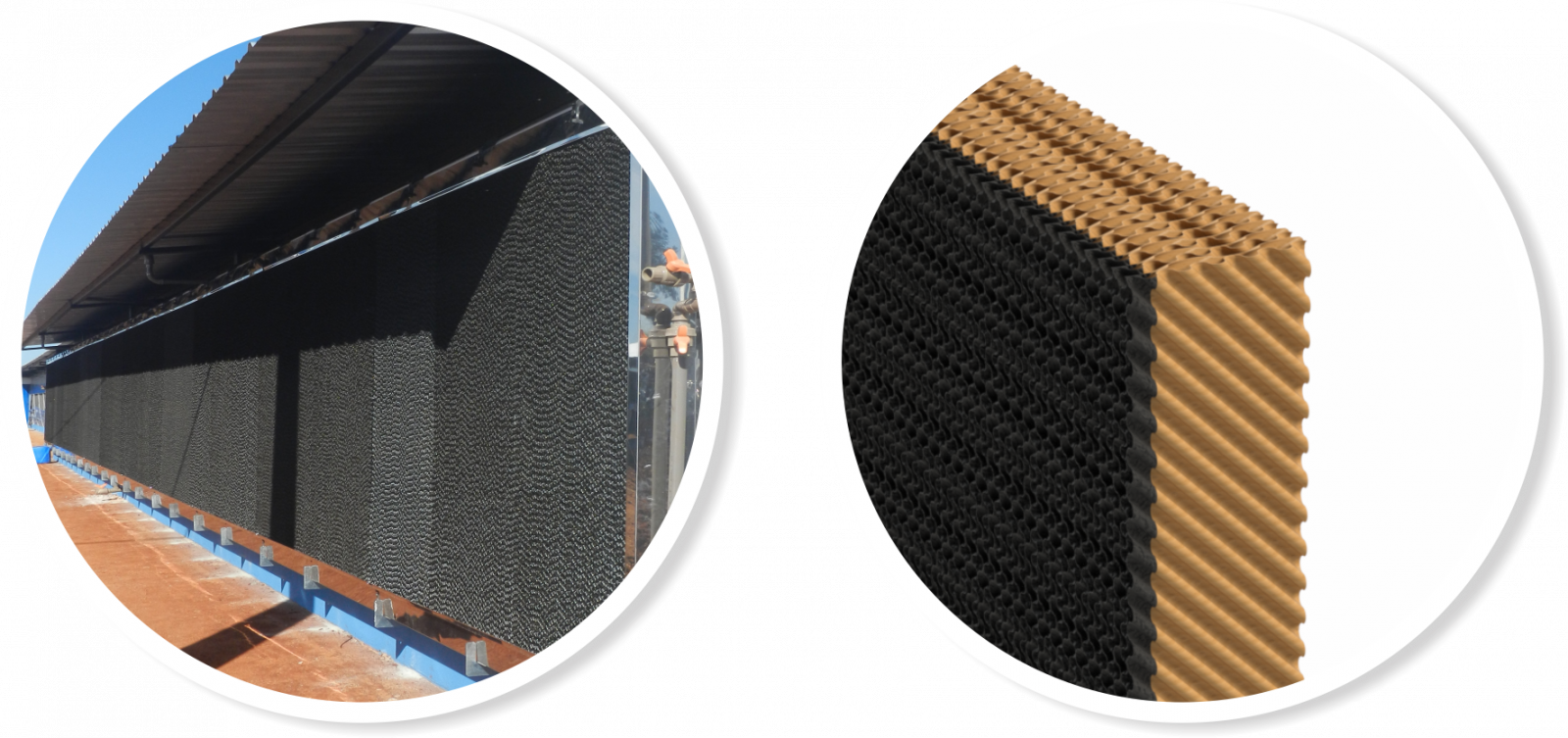 Avicultura Suinocultura Frango de Corte Creche Gestação e Maternidade Terminação Ambiência Ambiência Ambiência Ambiência- Placas evaporativas fabricadas com celulose especial de alta durabilidade em uma disposição de favo que maximiza a evaporação da água, reduzindo a temperatura e aumentando a umidade relativa na entrada de ar do ambiente, gerando uma maior eficiência de resfriamento e menor perda de carga do sistema como um todo;